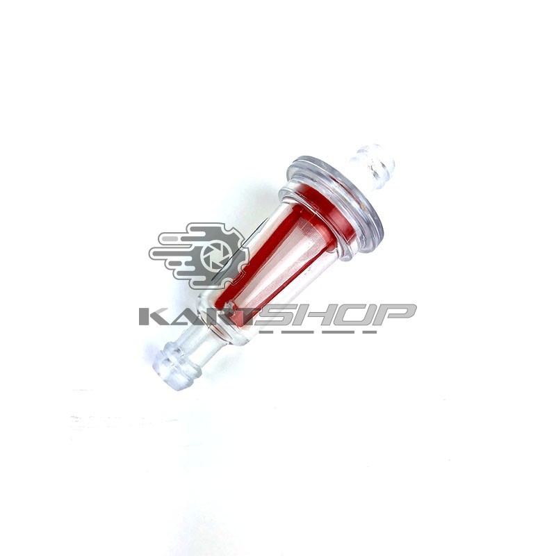 Ce petit filtre à essence est très utilisé notamment sur les karts à boite de vitesses, il possède un très bon débit et une bonne filtration.