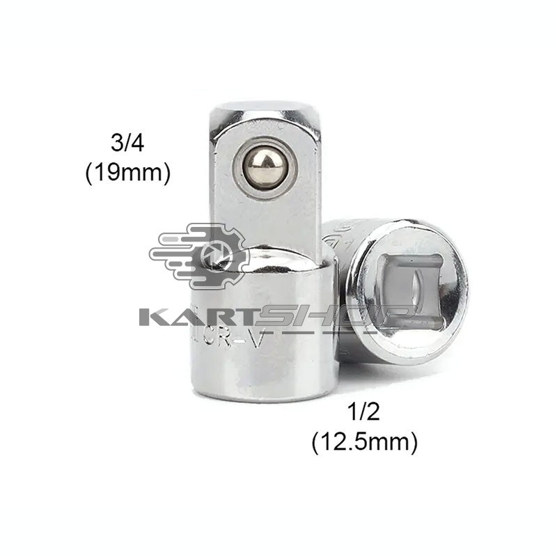 Adaptateur en Chrome Vanadium pour douille de 1/2" femelle vers 3/4" mâle.