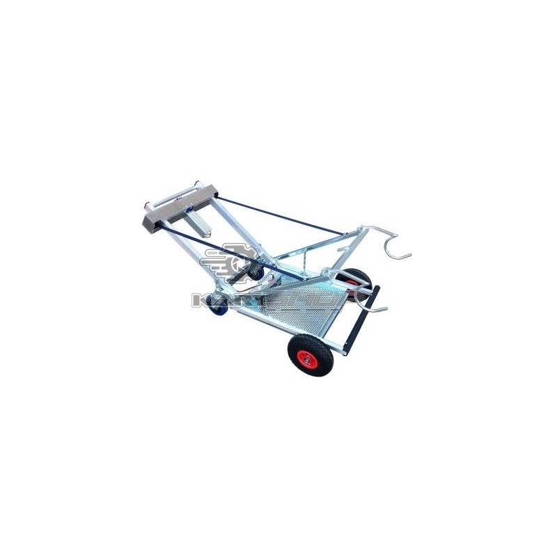 Il suffit de glisser les crochets du chariot dans le pare choc AR et d'appuyer sur le bouton pour remonter votre kart sur le chariot.