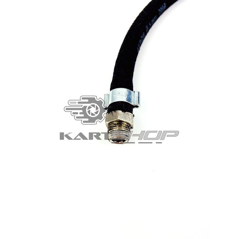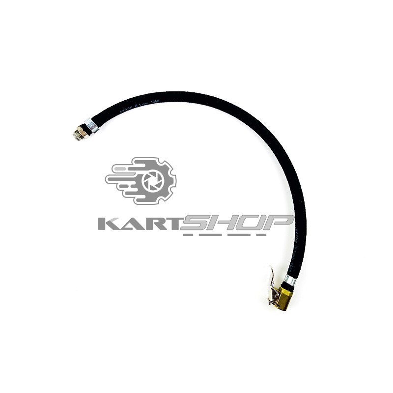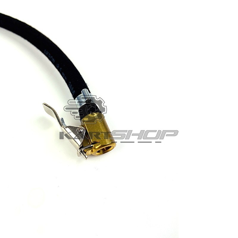 Ce tuyau textile et caoutchouc est fourni complet avec le raccord et l'embout pour valve type Schrader. Il est correspond à celui d'origine monté sur les manomètre PRISMA.