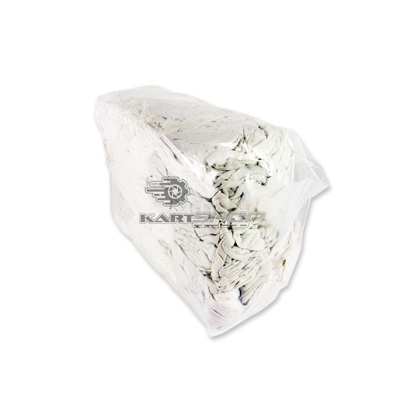 Paquet de 1 kg de chiffons en coton blanc recyclé. Ils seront parfaits pour le nettoyage dans un atelier mécanique.