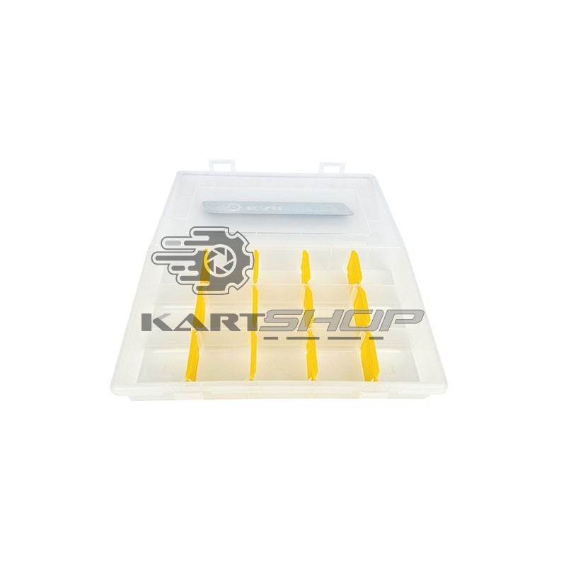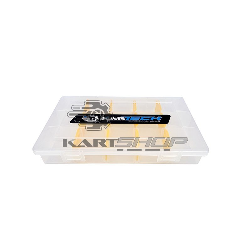 La boite de rangement KARTECH comprend 15 compartiments amovibles. Vous pourrez l'utiliser pour ranger vos pièces de réglages carbu, ainsi que votre visserie ou encore bien d'autres choses.